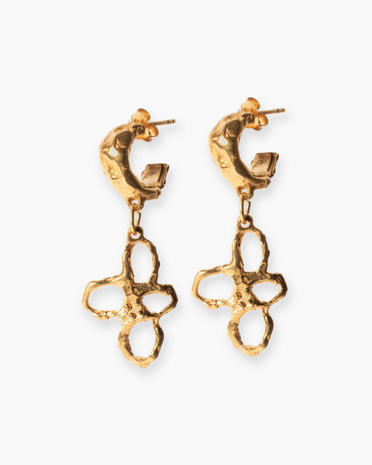 Gold-plated textured flower-shaped earring. Inspired by Giacometti's botanical sculptures.