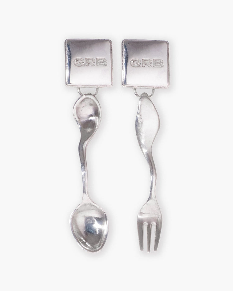 Silver earrings with a miniature spoon and fork. Lightweight and perfect for everyday wear.
